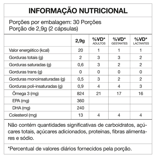 - 824mg de Ômega 3.