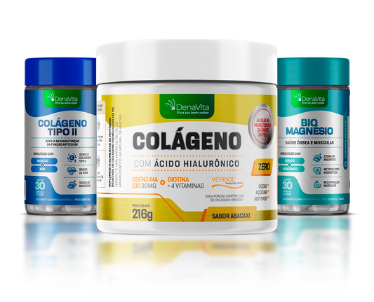 Suporte articular, ósseo e muscular com Colágeno Tipo II, Colágeno em pó e Magnésio Quelato.
